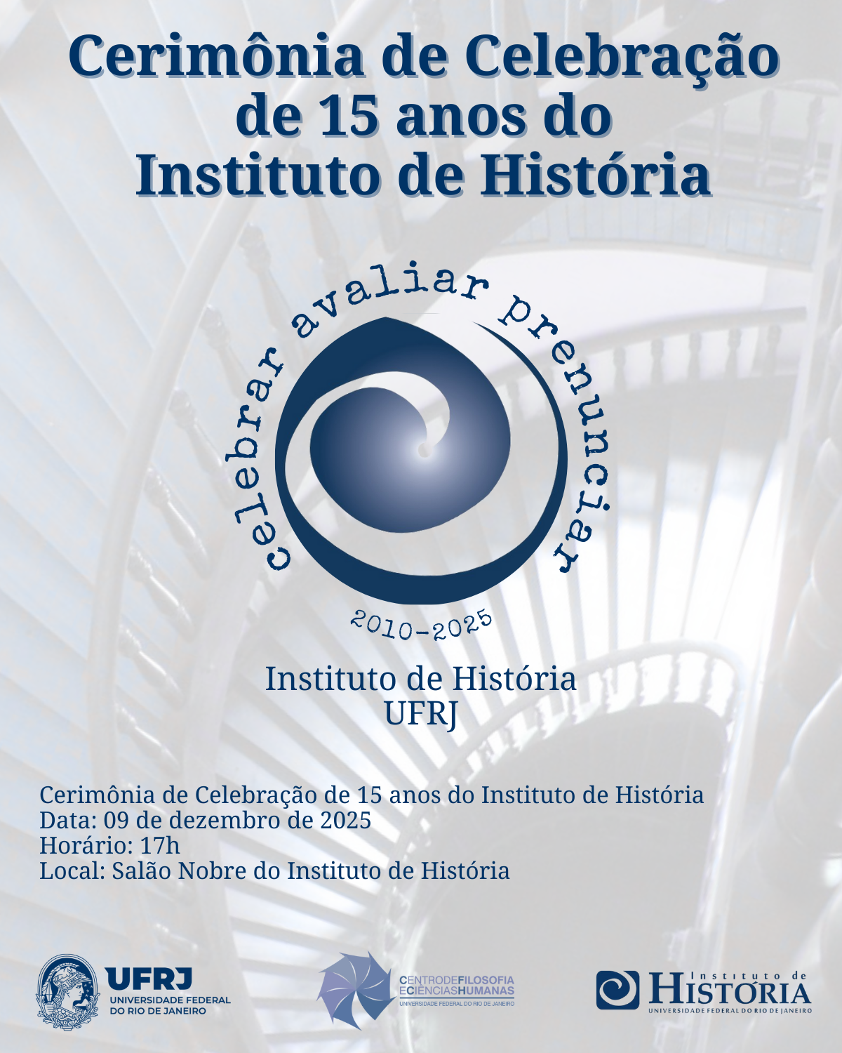 O Instituto de História convida a todos para a Defesa Pública de Memorial e para a Conferência "Mapas de artífices na monarquia portuguesa: os ourives, as associações de artífices e Corpus Christi na segunda metade do século XVIII", a ser ministrada pela Profa. Dra. Beatriz Catão Cruz Santos, como parte do seu processo de promoção para a classe de Professor Titular, no dia 03 de outubro de 2025, às 14h.